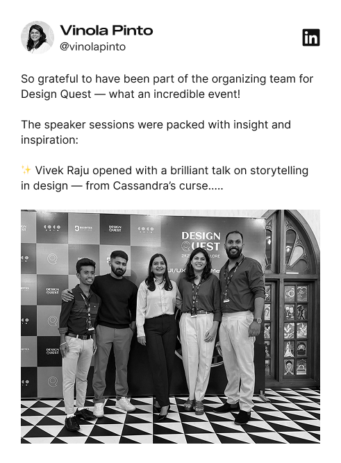 Previously, as Vice President – Design at Robosoft Technologies, Dean led large-scale design initiatives that shaped global digital experiences and strengthened product ecosystems across industries. His work has received 50+ national and international recognitions, including accolades at the Abby Awards and recognition as a Webby Awards Official Honoree.