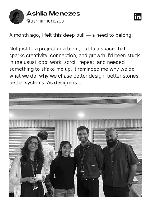 She is also passionate about mentoring designers, leading design workshops, and helping teams build stronger design practices while continuously improving product experiences.